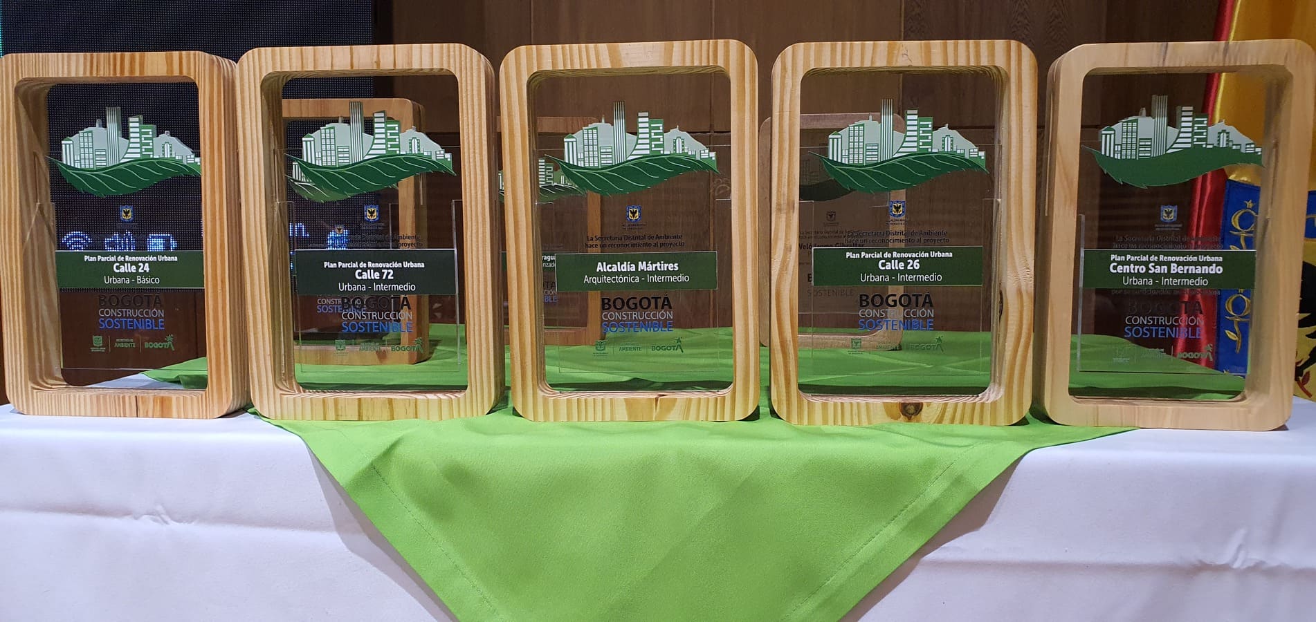 Bogotá. D.C., 16 de noviembre de 2023. RenoBo, Empresa de Renovación y Desarrollo Urbano de Bogotá, fue galardonada con  cinco premios otorgados por el Programa ´Bogotá Construcción Sostenible´ (BCS) de la Secretaría de Ambiente por proyectar e implementar estrategias de ecourbanismo y construcción sostenible en el mismo número de proyectos de renovación urbana.